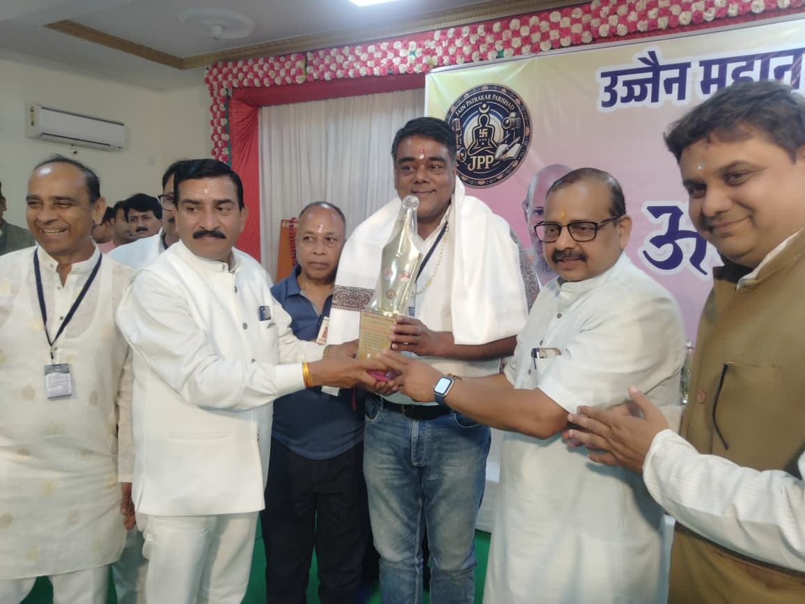 नीमच टुडे न्यूज़ | नीमच/उज्जैन में आयोजित जैन पत्रकार परिषद के भव्य अवार्ड समारोह में उत्कृष्ट पत्रकारिता के लिए नीमच के Rahul Jain को सम्मानित किया गया। यह कार्यक्रम उज्जैन स्थित शंकराचार्य मठ में परम पूज्य आचार्य विश्व रत्नसागर जी महाराज के सान्निध्य में सम्पन्न हुआ। समारोह में प्रदेश संयोजक दीपक दुग्गड ने स्वागत भाषण दिया तथा आचार्य श्री ने पत्रकारों की भूमिका पर प्रेरणादायी उद्बोधन दिया। इस अवसर पर कुल 11 पत्रकारों को सम्मानित किया गया और नीमच जिले से कई पत्रकार उपस्थित रहे। यह सम्मान पत्रकारिता में निष्पक्षता और साहस की भावना को प्रोत्साहित करने वाला माना गया। कार्यक्रम में उपस्थित पत्रकारों ने इस आयोजन को समाज में सकारात्मक पत्रकारिता को बढ़ावा देने वाला महत्वपूर्ण मंच बताया और इसे भविष्य के लिए प्रेरणादायक कदम कहा। आयोजकों ने सभी सम्मानित पत्रकारों को शुभकामनाएं दीं और उनके उज्ज्वल भविष्य की कामना की। समारोह का समापन धन्यवाद ज्ञापन के साथ किया गया। कार्यक्रम शांतिपूर्वक सम्पन्न हुआ। हुआ
